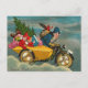 Santa Rides a Motorcycle - Christmas Holiday Postcard