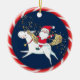 Santa Rides a Unicorn Cute Ceramic Ornament