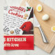 Add a festive touch to your kitchen with this charming personalized Christmas kitchen towel. featuring a playful Santa holding a giant cookie with a short, handwritten-style recipe for “Santa’s Secret Cookies” beneath him.