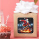 Santa Skateboards Over Fiery Ramp Square Sticker