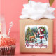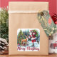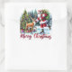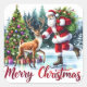 Santa Claus enjoys a festive moment skating while greeting a reindeer. Surrounded by beautifully decorated Christmas trees and colorful gifts, this cheerful scene captures the joyful spirit of the holiday season in a wintry wonderland.