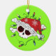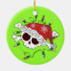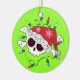 Cute Santa skull and crossbones with Christmas lights and snowflakes.