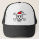 Santa skull hat Funny skeleton cartoon design with Santa Claus hat. Humorous Christmas party design.