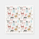 This paper napkin design has whimsical Christmas elements like Snowmen, reindeer and Santas with 'Ho, Ho, Ho', 'Hello' and 'Joy' messages in a random pattern. A modern, pastel color palette adds to the allure. Search ID559 to see other products with this design.