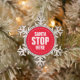 Santa Stop Here red & white cute funny Snowflake Pewter Christmas Ornament