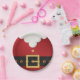 Cute Santa Suit paper plates. This design features the belly of Santa Claus with a gold glitter accented belt and Santa's beard. Perfect for your festive holiday Christmas dinner parties.