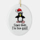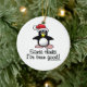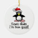 Funny Christmas saying with a Penguin wearing a Santa Hat. "Santa thinks I've been good."