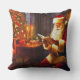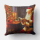 Santa Throw Pillow - St. Nick / Santa is sitting in a cozy holiday room reading by candlelight. The pillow has warm colors of deep red, golden tones, and off-white. Add this beautiful throw pillow to your Christmas decor to enjoy for years to come.