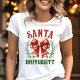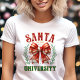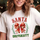 Get into the holiday spirit with this charming coquette-style shirt featuring a vintage-inspired red and white bow and Santa University design. Perfect for anyone who loves Christmas traditions with a modern, stylish twist. The festive bow and greenery accents bring a whimsical, coquette aesthetic that pairs wonderfully with holiday gatherings, parties, or just cozying up by the fire. Wear this trendy and elegant tee to showcase your love for the holiday season with a chic touch.