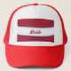 This is a trucker hat. The theme of the bachlorette party was sparkles, flamingos and palm trees. It was in Palm Springs in September at a rented home by the pool. It made PERFECT sense for these to help protect the skin of the beautiful attendees and also be a theme piece! They were a SUPER HIT!! They were pretty great quality if you consider the small printing job. Quality of the print was good. The hat it self is a little flimsy than other hats I own, but for a group product it worked out great!