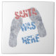 Santa Was Here pink and blue text and two in-toed footprints in the fresh snow. Funny Christmas Xmas prints, gifts and t-shirts for fun, humor and good mood