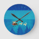 Cute and whimsical Santa Winter Scene Christmas Wall Clock featuring Santa Claus and his reindeer passing through a wintry blue forest on a starry night. Easy to customize, simply add the personalized text of your choosing to this design. Click on the "Customize It" button to find more personalization options.