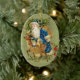 SANTA WITH DEER AND CHRISTMAS GIFTS IN WINTER SNOW CERAMIC ORNAMENT