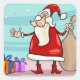 Santa standing by some presents and holding a sack. This design looks really effective on these Stickers