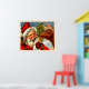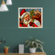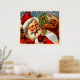 Decorate your wall with a charming vintage Christmas poster featuring Santa Claus feeding one of his reindeer with a candy cane.