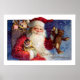 Decorate your wall with a beautiful vintage Christmas poster featuring Santa Claus with a teddy and Krampus in a box.