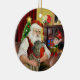 Santa relaxes at home in front of a cozy fire with his brindle Greyhound and one of his elves before the big night.