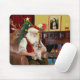 Santa at home with his wheaten Cairn Terrier, relaxing in front of a cozy fire before the big night. (Notice Mona Lisa over the mantel.)