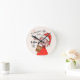 Bring holiday cheer to your home with this delightful Christmas-themed wall clock. Featuring a charming cartoon Santa sipping from a smiling coffee cup,
