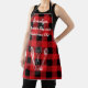This black and red flannel Christmas apron brings festive fun to the kitchen with white-outlined utensils of a whisk, spatula, and wooden spoon. Personalize it with a name to proudly show off your title as Santa’s Favorite Chef.