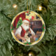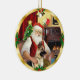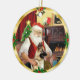 Santa relaxes in front of a cozy fire with his German Shepherd before the big night.