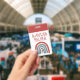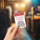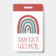 Santa's helper rainbow badge for holiday events or fairs. Red and white Santa ho, ho, ho.