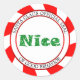 This custom holiday sticker features a festive Christmas theme. The phrase "Santa Claus Official Seal" is printed around the top portion and "Of Good Behavior" is printed along the bottom. The word "Nice" is printed in a whimsical green glitter style font. The border features a red and white striped peppermint candy cane design, with a red foil style frame. Show who has made it onto Santa's nice list.