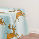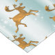 A very festive blue and gold table cloth featuring a pattern of golden reindeer, running over the ice at the North Pole. There are also stars and white sparkles all around on a lovely pale blue background. This pretty table cloth will add a cheerful and colorful touch to any Christmas dining table for Christmas Day.