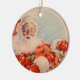 Christmas ornament with Santa Claus racing through a wintry storm in his sleigh on Christmas Eve.