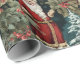 The wrapping paper features a delightful and nostalgic scene of an old-fashioned Santa Claus in a charming winter garden adorned with lush Christmas greenery and majestic evergreen trees. The design exudes the warmth and magic of the holiday season.