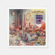 Charming vintage paper napkins featuring Santa with his elves in the workshop.