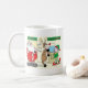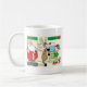 Cartoon character Santa observing water cooler gossip between his reindeer and elf in his workshop. Enjoy your favorite yuletide beverage with this cute and humorous holiday themed coffee mug, featuring the original cartoon character art of Marty Qatani