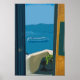 Digitally altered photo of a cruise ship in the caldera, taken through a doorway in Thira on the island of Santorini, Greece