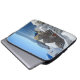 The sleeve is made of nice feeling material and seems very durable. I'm not sure how easy it'll be to clean, but the construction seems sound and the fabric is quick thick. I also like the double zipper. The printing is lovely and appears durable. The white on black contrast is nice, and the design very elegant.