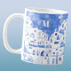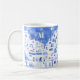 Watercolor blue and white townscape painting based on the Greek island of Santorini. Original art by Nic Squirrell. Change the monogram initial to personalize.