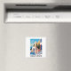 Stylish abstract Santorini Greece painting on a Magnet featuring the unique architecture and a coastal view of the greek island. Great souvenir and gift idea.