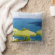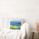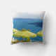 Cocktails by the Sea. Bring a vacation with vibrant color to your sofa, chair or bed with this charming pillow. Images is a colorful watercolor painting of an inviting restaurant in Santorini Greece. Bright green umbrellas against beautiful blue of the Aegean sea. Mediterranean colors.