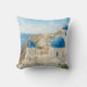 Santorini Greece Watercolor Blue Dome Church Throw Pillow