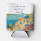 Santorini Greece Watercolor Skyline Wedding Can Cooler