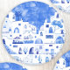 A Watercolor townscape painting of the beautiful Greek island of Santorini.