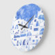 Santorini Greece Watercolor Townscape Large Clock