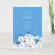 A beautiful order of service program design with rustic illustration of Santorini, blue dome churches, Bougainvillea, terracotta pot plants with a Greek Island white wash wall background. An elegant destination Santorini, Greece wedding design perfect for Santorini and Greek Island Mediterranean style weddings. The reverse of the card showcases a minimalist monogram with a blue dome church. Matching wedding invitations and other stationery items are also available.