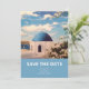 This is an acrylic hand painting of Santorini Greece for a save the date. With a light blue background, this modern and simple design is perfect for destination wedding in Greece. Perfect for those who love the beach, flowers, art, and architecture. Customize and personalize with your wedding information.