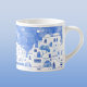 Watercolor blue and white townscape painting based on the beautiful Greek island of Santorini. Original art by Nic Squirrell.