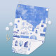 Blue and white Watercolor townscape painting of the village of Oia on the Greek island of Santorini.