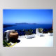 Middle panel of a panaromic view from a patio high atop the Greek island of Santorini in the Meditteranean Sea. All three panels make a stunning backdrop for your living room or office.