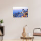 Beautiful poster with Oia village night view, island of Santorini, Greece