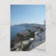 Looking out into the blue ocean and crowded neighborhoods of Oia on the island of Santorini in Greece.