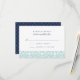 Designed to coordinate with our Santorini wedding invitation collection in Aqua, this elegant Mediterranean style response card features a geometric tile inspired bottom border in dreamy turquoise aqua. Add your RSVP date and custom accept/decline text in crisp navy blue on white.