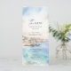 With soft ocean blues, golden shoreline tones, and charming seaside architecture, this menu brings a refined destination feel to your wedding table. The clean layout ensures your courses are easy to read, while the artistic watercolor details add a beautiful and memorable touch.